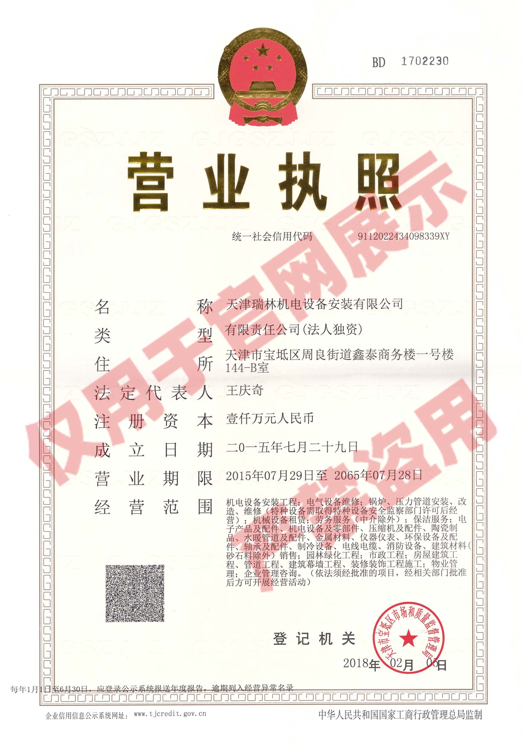 天津瑞林機電設(shè)備安裝有限公司于2015年7月注冊成立于環(huán)渤海地區(qū)經(jīng)濟中心天津,注冊資金為人民幣1000萬元,現(xiàn)有員工300人,其中中高級技術(shù)職稱人數(shù)30人,業(yè)務(wù)涉及機電設(shè)備安裝、管道安裝、鍋爐和壓力管道安裝、改造、維修等諸多領(lǐng)域。